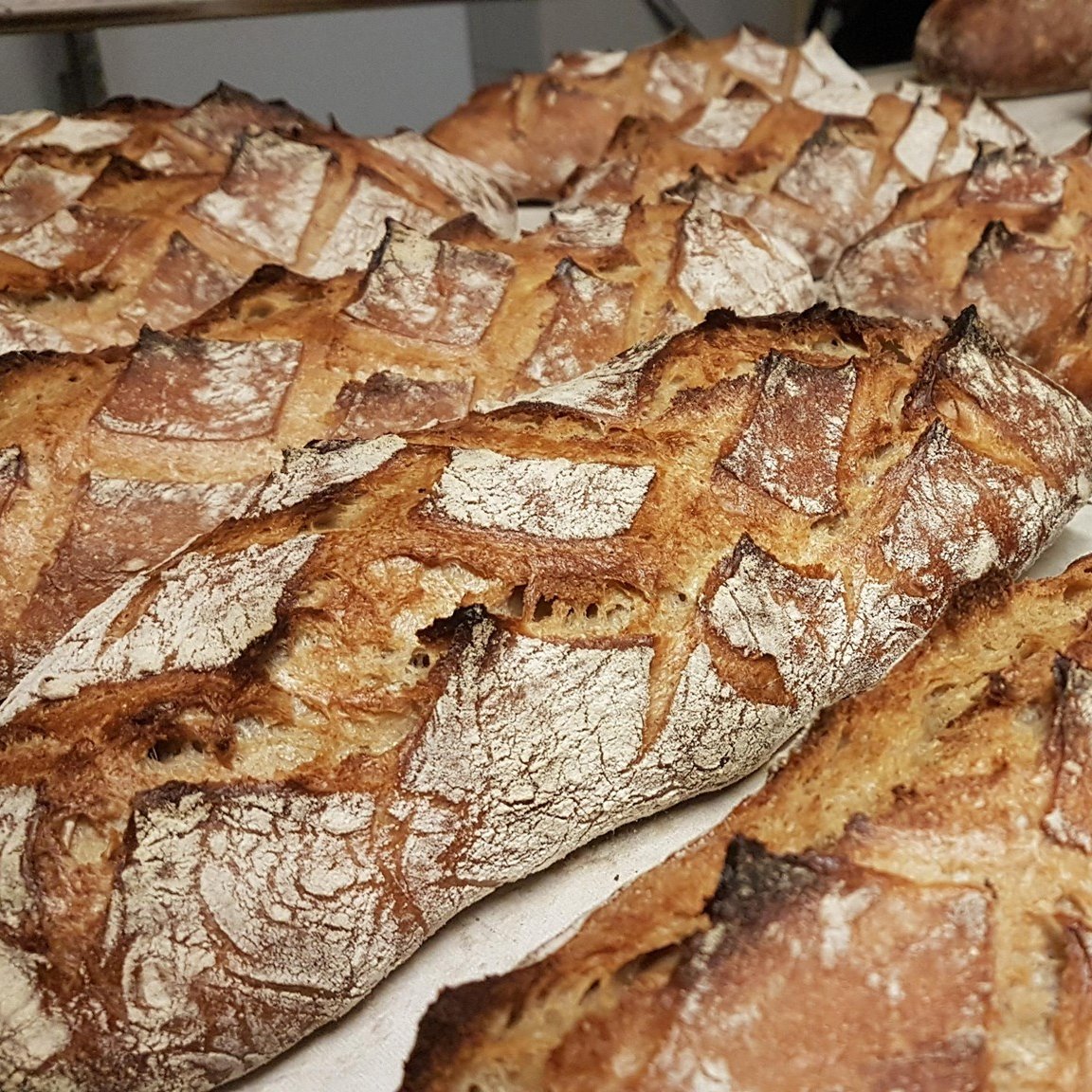 Farine de blé T65, farine de châtaigne, levain de blé, sel